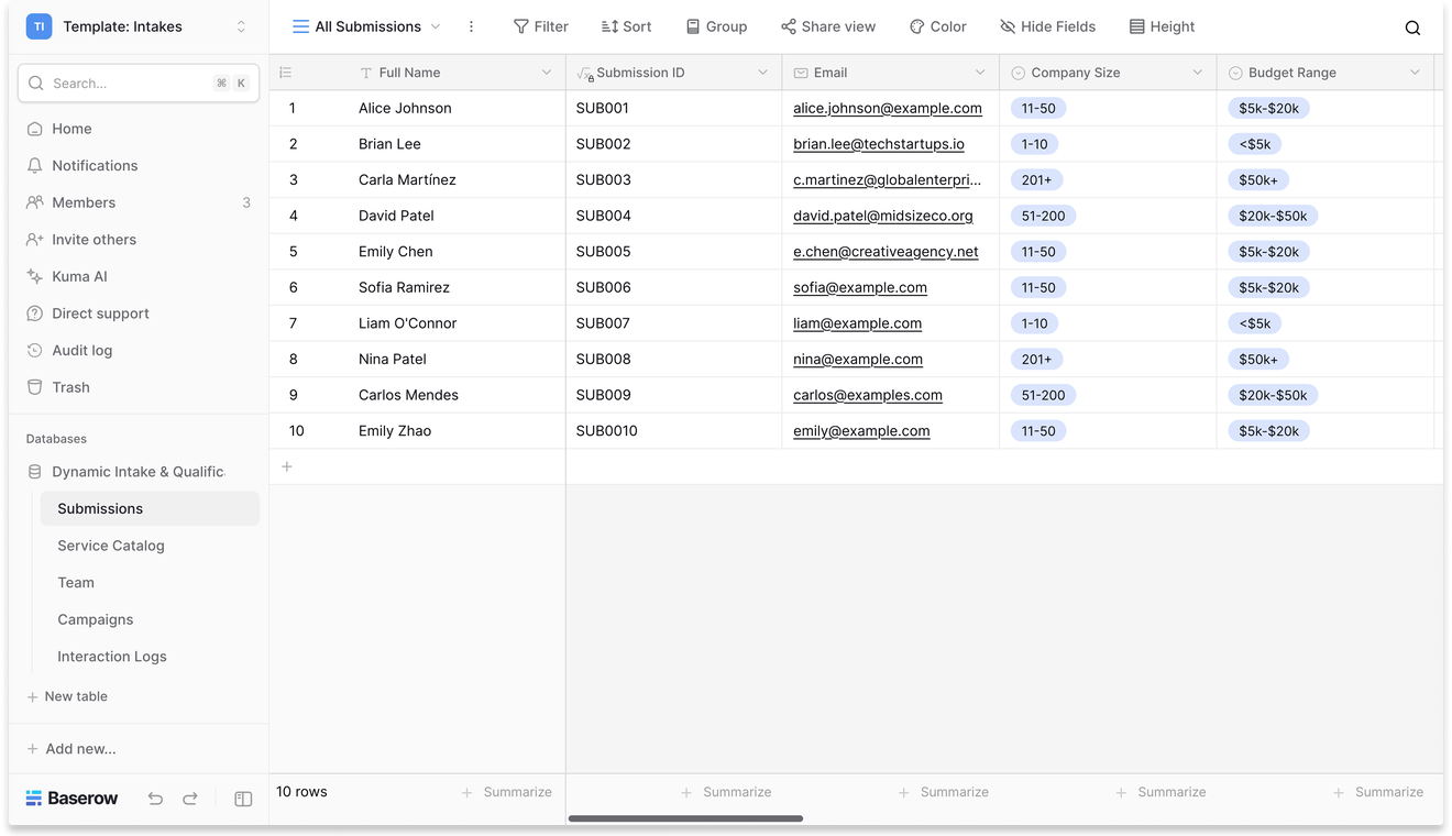 A Google Forms alternative where form submissions become structured database records — not spreadsheets or inboxes.